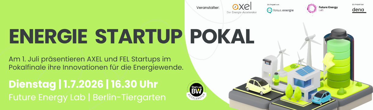Am 1. Juli präsentieren Startups von AXEL - Der Energie-Accelerator und des Future Energy Lab im Pokalfinale ihre Innovationen für die Energiewende.